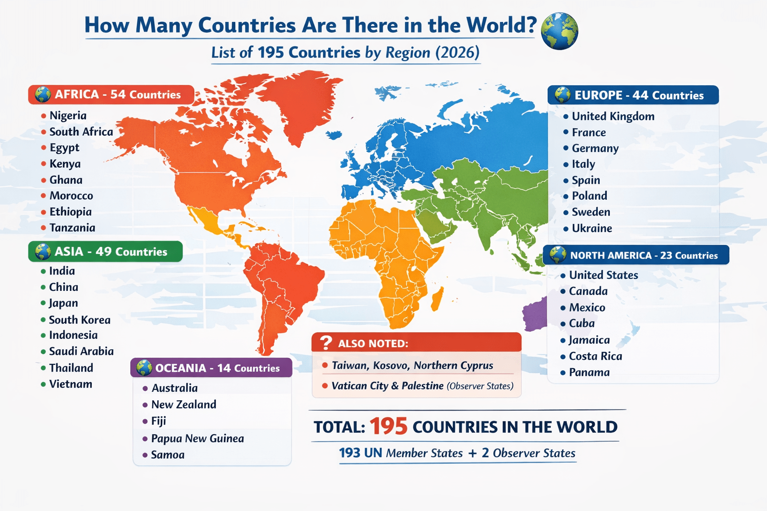 List of All 195 Countries in the World (By Region)
